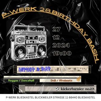 Feiert mit uns den 28. Geburtstag des P-Werk Blieskastel! Es erwartet euch ein unvergesslicher Abend voller Musik, Energie und guter Vibes! Lasst euch von spektakulären Rap Acts begeistern und tanzt zu den besten Reggae-, Dancehall- und Afrobeats-Sounds.