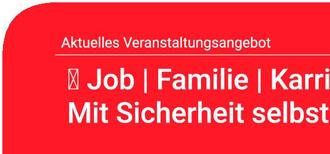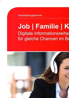 „Job | Familie | Karriere“ ist eine Vortragsreihe, die sich vorrangig an Frauen richtet und aktuelle Themen aus der Arbeitswelt behandelt. Interessierte aller Alters- und Berufsgruppen, die erwerbstätig sind oder sein möchten, sind zur Teilnahme eingeladen, auch wenn sie bisher noch nicht in Kontakt mit der Agentur für Arbeit stehen.