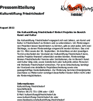 Kultur in Friedrichsdorf zu fördern und zu unterstützen. Um Förderungen