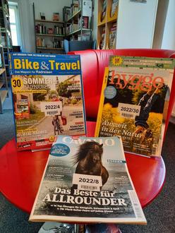 Unter dem Motto „Alles neu macht der August“ steht eine kleine Umbauaktion: Die Zeitungen und Zeitschriften findet man jetzt im Lesebereich, direkt nach dem Eingang. Apropos Zeitschriften - neu im Sortiment sind „Cavallo“, „Hygge“ und „Bike & Travel“.