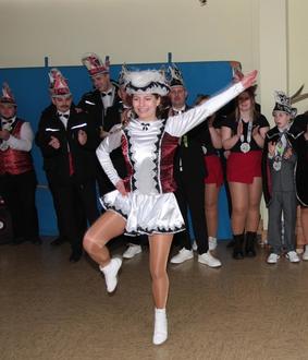 Bei einem Spiel musste das große und das kleine Prinzenpaar beweisen, wie gut sie im rätseln sind. Durch gezielte Fragen mussten sie erraten, welches „Tier“ sie sind. Beide haben es mit Bravour bestanden. Danach erfreuten die Kinder ihre Gäste mit einem Tanz.