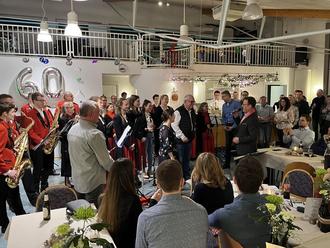 Hubert Elm, erster Vorsitzender des Musikverein Döngesmühle, konnte dieser Tage seinen 60. Geburtstag feiern. „Die Döngesmühlern“ gratulierten ihrem Sänger mit einem Ständchen, das von Dirigent Oliver Krah eigens für diesen Anlass zusammengestellt und vom zweiten Vorsitzenden Klaus-Dieter Wiegand herzlichst moderiert wurde. Als weiteres Danke schön für sein Engagement überreichte Schriftführer Ralf Ranft dem Jubilar im Namen aller Aktiven einen Korb musikalischer Weine. Hubert Elm nahm das Geschenk dankend entgegen und freute sich sehr über die Geburtstagsgrüße des Orchesters.