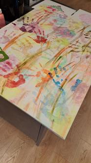 Als Höhepunkt gestalteten alle gemeinsam einen Keilrahmen mit Handabdrücken von jedem Anwesenden, der nun in der Tagespflege ausgehängt wird, um die Erinnerung an diesen besonderen Tag lebendig zu halten.