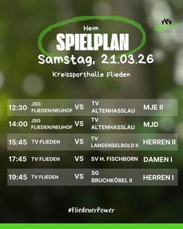 | 18:00 Damen II: | TV Altenhaßlau II - TV Flieden II |