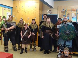 Unter dem Motto „Seefahrer, Wikinger und Piraten“ feierten die Kinder des Kindergartens Magdlos am Freitag, 28.02.2025 ein tolles Faschingsfest. Alle Kinder und das Personal waren in dem Thema entsprechenden Kostümen und wurden mit einem freudigen Ahoi begrüßt. Durch den Rumpf eines Piratenschiffs gingen die Kinder an Bord und absolvierten einen Parkour mit verschiedenen Stationen. Es mussten Aufgaben gelöst, Feinde mit Kanonenkugeln abgeschossen und eine Flaschenpost aus dem Wasser gefischt werden. Durch einen dunklen Gang führte der Weg auf einem Boot zu einem Schatz, unterwegs wurden gefährliche Gegenstände eingesammelt und die Kinder erkletterten einen Schiffsmast, schwangen die Piratenfahne und im schnellen Ritt auf den Wellen ging es abwärts. Seeungeheuer wurden abgeworfen und natürlich ordentlich getanzt. Zur Stärkung gab es ein reichhaltiges Piratenfrühstück und dann besuchten uns echte Wikinger. Die Prinzenmannschaft aus Magdlos kam in tollen Wikingerkostümen und absolvierte ebenfalls den Parkour. Als Schatz hatten sie für alle Kinder Gummibärchen mitgenbracht und erhielten, genau wie die Kinder, den Kindergarten Orden.