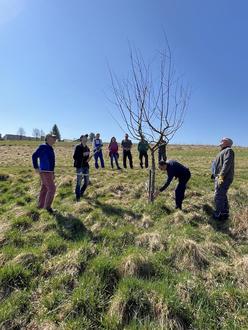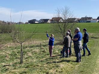 Nicht nur die angenehm wärmende Frühjahrssonne sondern auch das Interesse am Thema hatte die erfreulich hohe Zahl von 10 NABU-Aktiven an die frische Luft gelockt. Am Samstag, 5. April 2024 trafen wir uns nämlich zum Obstbaumschnitt an den Apfelbäumen entlang der Mühlersbach oberhalb der Tennisplätze. Matthias Kraft, NABU-Mitglied und ein echter Experte mit viel Erfahrung auf dem Gebiet der Pomologie, konnte uns viel theoretisches Wissen rund um das Thema Obstbaumpflege vermitteln. Ich denke, jeder von uns weiß jetzt was eine Saftwaage ist, deren Kenntnis beim sogenannten Erziehzungsschnitt genauso von Bedeutung ist wie die richtige Auswahl der zukünftigen Leitäste. Wir konnten aber auch viele Informationen für die Praxis des Baumschnitts nach Hause tragen. Dank der guten Erklärungen von Matthias und der gut gelaunten und motivierten Naturschützer konnten dann auch einige Obstbäume von überschüssigem Astwerk befreit werden. Der Vormittag endete mit einem herzlichen Dank an Matthias, einem netten Austausch von Ansichten und Meinungen und ein paar guten Wurst- und Käsebrötchen von der Metzgerei Kramer. Auch die kühlen Getränke durften natürlich nicht fehlen.