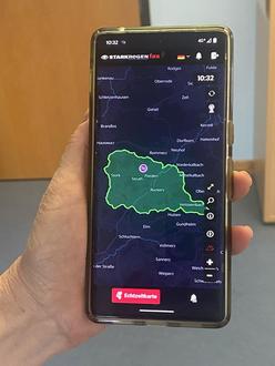 Die Starkregen-App informiert Sie in Echtzeit über die Entwicklung von Niederschlag und Pegelwasserständen an Ihrem Wohnort.