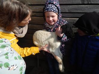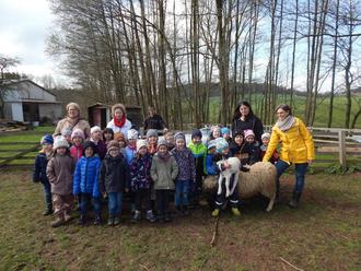 Die erste gruppenübergreifende Wanderung führte uns zu den Schafen und Lämmern der Familie Lauer. Diese hatte uns eingeladen, einige Zeit mit den Tieren zu erleben.