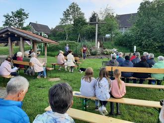 Fast 40 Leute versammelten sich am 24. Mai bei schönem Wetter am Friedenskreuz hinter dem DGH zur alljährlichen Maiandacht auf der Struth.