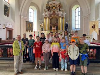 Am 12.5. besuchten wir die katholische Kirche in Flieden. Wir wanderten von der Steinkammerschule zur Kirche. Dort hat uns Frau Reith-Schäfer schon empfangen und uns Süßigkeiten verteilt. Dann kam Herr Raimund Henkel und hat uns sehr interessante Dinge über die Kirche erzählt.