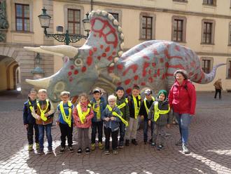 Schon die Zugfahrt am Morgen war für viele Kinder ein besonderes Erlebnis – für einige sogar die erste überhaupt. Mit viel Vorfreude im Gepäck ging es direkt zum Vonderau Museum, wo die Gruppe in die faszinierende Welt der Urzeit eintauchte. Die Ausstellung „Dino, Dodo & CO.“ beeindruckte mit riesigen Dinosauriermodellen, echten Fossilien und spannenden Mitmachstationen. Die Kinder bestaunten den gewaltigen Triceratops, lernten den längst ausgestorbenen Dodo kennen und erfuhren, wie Tiere früher gelebt haben.