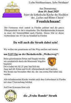 Donnerstag, den 19. Juni – Fronleichnam, Hochfest | |