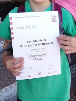 Ein Team aus allen 4. Klässlern der Fliedetalschule hat bei dem Schulwettbewerb Jugend trainiert für Olympia - Leichtathletik im Stadion in Hünfeld herausragende Leistungen gezeigt und verdient den 1. Platz gemacht. Sie konnten sich in den Disziplinen Weitsprung, Sprint, Drehwurf, Hindernissprint und einem 1,4 km Crosslauf vor den anderen vier teilnehmenden Schulen absetzen. Die ganze Fliedetalschule ist stolz auf dieses tolle Ergebnis.