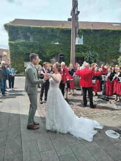 Am 07. Juni durften wir unserer Vorsitzenden Tamara, die nicht nur in unseren Reihen an der Flöte aktiv ist, sondern auch unser Jugendorchester leitet, ein musikalisches Geschenk zur Hochzeit machen.