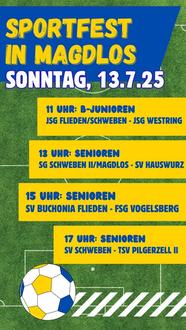 Am 13.7. findet unser Sportfest statt. Den Start machen die B-Juniorender JSG Flieden/Schweben (11 Uhr), die gegen West Ring spielen.