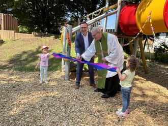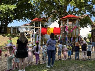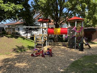 Und die freuen sich riesig, endlich rutschen, kriechen und klettern zu können. Die Kletterwand ist dabei besonders beliebt. Pfarrer Thomas Maleja segnete die neue Spielanlage mit Weihwasser und wünschte den Kindern viel Spaß beim gemeinsamen Toben und Spielen. Auch Fliedens Bürgermeister Christopher Gärtner zeigte sich glücklich darüber, das Spielgerät und die Schaukel nun offiziell in Kinderhände geben zu können. Mehr als 40.000 Euro hat die Anlage mitsamt Sanierung des Hügels gekostet - ein stolzer Preis, „den wir als Gemeinde aber gerne zahlen“, betonte er. „Das ist gut investiertes Geld. Unsere Kinder sollen im Kindergarten eine schöne und unbeschwerte Zeit erleben, sich frei entfalten und sich wohlfühlen - und dafür ist eine attraktive Spielfläche wichtig.“