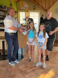 Anlässlich der Ortsbeiratssitzung übergaben Jette und Maya den Erlös ihres Verkaufes, stellvertretend für alle Organisatoren, an den Ortsvorsteher Marcus Müller und den 1.Vorsitzenden der frohen Runde Thomas Larbig.