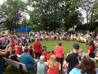 Eine musikalische Aufführung mit Liedern und Tänzen stand im Mittelpunkt der Darbietung für unsere Gäste. Im Anschluss gab es Spiel-, Bastel- und Schminkstationen, eine Filmvorführung, eine Schatzsuche und leckere Salate und eine Cafeteria.