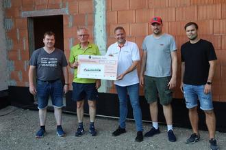 Für den SV Schweben kommt die Finanzspritze des lsb h gerade recht. Die Verantwortlichen um Christian Birkenbach, Jannik Resch, Alexander Hess und Eugen Hack haben für den Anbau eines Geräteraumes Kosten von mehr als 80.000 € eingeplant. Dafür sollen die Mittel aus dem Vereinsförderfond des lsb h komplett eingesetzt werden. In den letzten Tagen konnte das Team des Sportkreis Fulda-Hünfeld symbolisch den Förderscheck in Höhe von 8.500 € übergeben. Eugen Hack war begeistert von der Betreuung und Beratung durch lsb h und Sportkreis. Neben dem Öko-Check waren die Verantwortlichen auch zu einer Förderberatung vor Ort und standen dem SVS während des ganzen Antragsprozesses begleitend zur Seite. Dies könne man von Menschen, die sich ausschließlich im Ehrenamt engagieren, eigentlich in diesem Umfang nicht erwarten. „Es ist erstaunlich, was ihr leistet! Vielen Dank!“