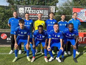 Oben von links: Daniel Reith (Spielausschussvorsitzender), Nikolcho Gorgiev (SpVgg. Hosenfeld), Johannes Müller (SV Niederzell), Maximilian Happ (pausierte), Leander Auth (spielender Co-Trainer), Philipp Mötzung (SG Distelrasen, Spielertrainer).