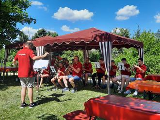 Die „Jungen Döngesmühler“ musizierten auch in diesem Jahr auf dem Sommerfest des Alten- und Pflegeheimes St. Katharina in Flieden. Erstmals spielten die jungen Musikerinnen und Musiker in ihrer neuen Formation bei einem öffentlichen Auftritt, wobei Marie und Marlon Resch an diesem Nachmittag ihre Premiere in unseren Reihen feierten. Unter der Leitung von Dirk Jestädt präsentierten die Jugendlich stolz das in den gemeinsamen Proben intensiv eingeübte Repertoire, welches noch nicht ganz so umfangreich ist. Der Musikverein Döngesmühle dankt den Verantwortlichen von St. Katharina, dass sie unserem Jugendorchester diese Plattform auf ihrem Sommerfest gegeben haben. Wir kommen gerne wieder.