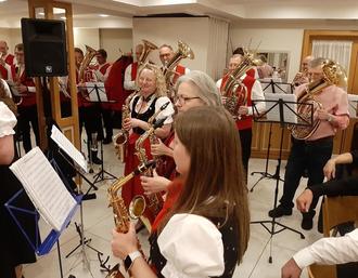 Am Samstagabend, den 07. Januar 2023 trafen sich „Die Döngesmühler“ in „Gasse“ in Neuhof, um ihrem ältesten Aktiven Edgar Auth zu seinem 70. Geburtstag zu gratulieren. Mit zünftiger Blasmusik inklusive Gesang unterhielten wir die Geburtstagsgäste. Selbstverständlich hatte Edgar sein Bariton mitgebracht. Nach den ersten beiden Titeln mischte er sich unter die Aktiven und musizierte mit uns gemeinsam. Unterhaltsam führten erster Vorsitzender Hubert Elm und musikalischer Leiter Oliver Krah durch das vielfältige Programm, welches vom Jubilar selbst zusammengestellt wurde. Sie dankten Edgar für sein langjähriges Engagement, wünschten ihm für die Zukunft alles Gute und insbesondere viel Zeit für die Musik.