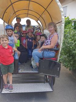 Am 19.07.2023 machten sich 23 Vorschulkinder der Kita St. Martin auf den Weg zum Reiterhof- Berishof.
