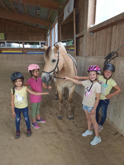 Gemeinsam erkundeten wir den Reiterhof und erarbeiteten Verhaltensregeln, die im Umgang mit den Pferden wichtig sind.