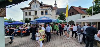 Im Anschluss fand bei herrlichem Sonnenschein noch ein „kleines Pfarrfest“ im Pfarrhof statt. Es gab wieder traditionelle Pizza aus dem Backhaus und Kloster Urstoff als Ersatz für das beliebte Kreuzbergbier.
