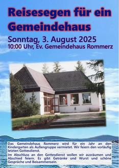 Das Gemeindehaus Rommerz wird für ein Jahr an den Kindergarten als Außengruppe vermietet. Wir feiern den vorläufig letzten Gottesdienst.