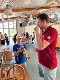 Am Nachmittag durften die Kinder und Jugendlichen endlich die Instrumente des Musikvereins ausprobieren. Unterstützt durch Musiker und Musikerinnen des großen Orchesters und des Jugendorchesters konnten sie die verschiedenen Instrumene näher kennenlernen. Sowohl die Kinder und Jugendlichen als auch die Instrumentenexperten hatten dabei große Freude.