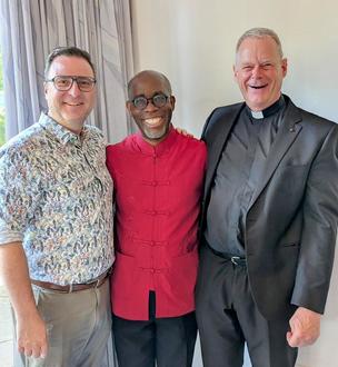 Am vergangenen Sonntag hat Fliedens Bürgermeister Christopher Gärtner Herrn Pfarrer Uche Ugwueze (Mitte) zu seinem 25-jährigen Jubiläum als Priester gratuliert. Die katholische Pfarrgemeinde Christkönig Flieden hat das Jubiläum mit einem Festgottesdienst und anschließendem Beisammensein mit afrikanischen Köstlichkeiten sowie einem Konzert mit Joyful in der Pfarrkirche St. Goar gefeiert.