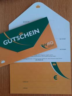 Der seit Jahren erfolgreiche und bewährte WIFO-Gutschein hat sein Aussehen komplett verändert und ist seit einigen Monaten als Faltgutschein ohne Umschlag zu erwerben.