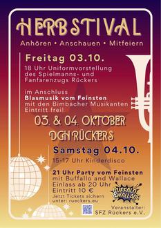 | Ab 18 Uhr | Vorstellung der neuen Uniform des SFZ Rückers, anschließend musikalische Unterhaltung mit den Bimbacher Musikanten |