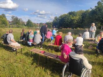 Wie seit vielen Jahren war die Wiese am Paddelteich der ideale Ort, um bei herrlichem Wetter den Blick auf Menschen, Tiere, Pflanzen, Gottes gute Schöpfung, zu richten. Ca. 30 evangelische und katholische Christen und Christinnen ließen sich von biblischen Texten und aktuellen Interpretationen berühren. Gemeinsam die anvertraute Erde mit allen Geschöpfen zu achten, Schutz und Lebensraum zu gewähren und für das Wohl aller einzutreten, war das Anliegen dieses Schöpfungstages, der überall in Deutschland gefeiert wird.