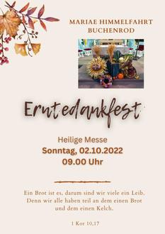 Am Sonntag, dem 2. oder Sonntag, dem 9. Oktober 2022, feiert unsere Pfarrgemeinde das Erntedankfest (s. Gottesdienstordnung).
