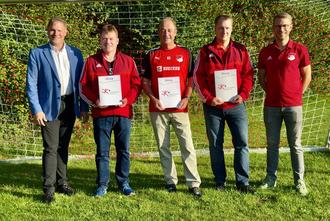 Im Rahmen eines Ehrungsabends mit Richtfest der neuen Garage hat der SV Schweben eine ganze Reihe von verdienten Mitgliedern mit Urkunde und Ehrennadel in Gold und Bronze für ihre langjährige Treue zum Verein geehrt.