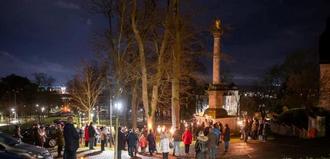 Um 18 Uhr begann am Domplatz die Lichterprozession, die in einer Atmosphäre der Stille zur Mariensäule am Fuße des Frauenbergs zog.