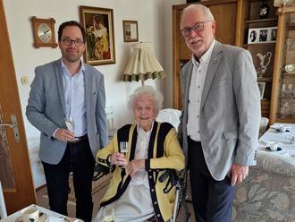 Die Jubilarin erfreut sich einer robusten Gesundheit und informiert sich täglich aus der Zeitung über das Weltgeschehen. Zu dem besonderen Anlass begrüßte sie zahlreiche Gäste, denen sie von einigen Episoden aus ihrem bewegten Leben berichtete. Bürgermeister Christian Henkel übergab eine Glückwunschurkunde des Hessischen Ministerpräsidenten Boris Rhein und gratulierte im Namen der Gemeinde Flieden. Die Glückwünsche des Landkreises Fulda übergab der Kreisbeigeordnete Joachim Janshen. Pfarrer Holger Biehn überbrachte die Glück- und Segenswünsche der evangelischen Kirchengemeinde.
