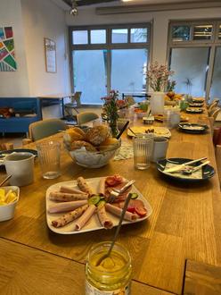 In der Zeit von 9:30 Uhr bis 11:30 Uhr kamen die Senioren und Seniorinnen zusammen, um gemeinsam zu frühstücken und sich bei guter Stimmung mit Kaffee und Tee über aktuelle Themen auszutauschen. Dabei ging es unter anderem um verschiedene Angebote und Freizeitaktivitäten, gemeinsame Interessen und aktuelle Geschehnisse in Flieden und der Region. Der Tisch wurde zuvor reichlich von zwei Mitarbeiterinnen des Familienzentrums mit verschiedenen Brötchen, Brot, Wurst und Käse sowie Aufstrichen und Marmelade gedeckt. Viele der Senioren und Seniorinnen kommen regelmäßig zum Seniorenfrühstück, sodass bei vertrauter Atmosphäre und viel Lachen die Zeit verflog.