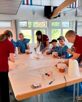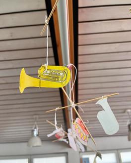 Im Anschluss hatten die Teilnehmer und Teilnehmerinnen die Möglichkeit ihre eigenen Trommeln zu basteln und zu gestalten. Außerdem konnten eigene Musikinstrumente-Mobiles gestaltet werden.