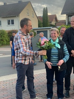 Ebenfalls wurde im Döngesmühler Blumenladen bei Anita gedreht. Zum Dank überreichte Sie Redakteur Christian Vogel einen Blumenstrauß.