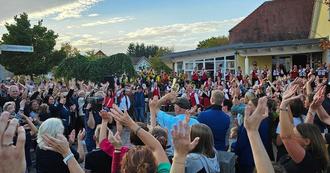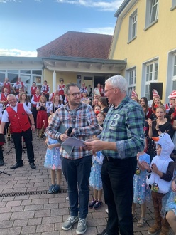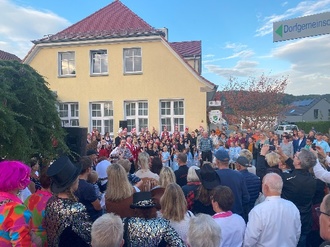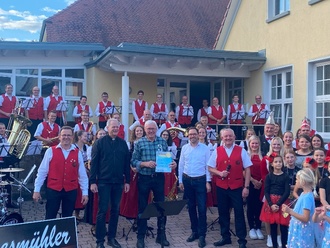 Zum Abschluss des Drehtages kam der ganze Ort am Dorfgemeinschaftshaus zusammen. Der Musikverein Döngesmühle umrahmte den Abschluss musikalisch.