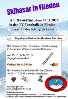 Der Skibasar des Skiclub Flieden findet in diesem Jahr am Samstag, dem 29.11.2025 statt.