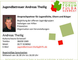 Aufgrund eines erhöhten Betreuungsbedarfs durch die vom Corona-Virus verursachten gesellschaftlichen Folgen hat der Jugendbetreuer Herr Theilig ab sofort und bis auf Weiteres erweiterte Bürozeiten: