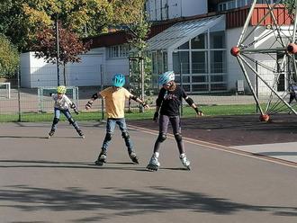 Am Mittwoch, den 11.10.23 wurde am Schulhof der Fliedetalschule wieder fleißig geskatet. Schon seit mehreren Jahren ist das Inlineskaten fester Bestandteil im Sportunterricht der Viertklässler. Mehrere Wochen hatten die Kinder der vierten Jahrgangsstufen das sichere Fahren mit den Inlineskates geübt und sogar kleine Tricks erprobt. An diesem Nachmittag konnten die Kinder ihr gelerntes Können vor den Augen der Fuldaer Domskater präsentieren, indem sie den Parcour für das blaue Skateabzeichen absolvierten. Zur Inlinerprüfung gehörte das Slalomfahren, Kreiseln, das Übersteigen eines Hindernisses, sowie das Kleinmachen um unter einem Stab durchzufahren. Außerdem bewiesen die Kinder Fahrsicherheit, indem sie 5 Minuten ohne zu Stürzen skateten und eine Strecke sogar rückwärtsfuhren. Alle Kinder konnten den Prüfer der Domskater überzeugen und erhielten freudig und stolz ihr blaues Skateabzeichen.