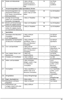| (5) | Bei der Stellplatzberechnung ist jeweils ab einem Wert der ersten Dezimalstelle ab fünf auf einen vollen Stellplatz aufzurunden. |