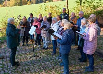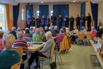Zum diesjährigen Volkstrauertag hatte der Ortsbeirat Döngesmühle zur Gedenkfeier am Ehrenmal am Weinberg für die gefallenen und vermissten der beiden letzten Weltkriege eingeladen. Diese Gedenkfeier wurde musikalisch von den Sängern und Sängerinnen der Chorgemeinschaft Döngesmühle mit mehreren Liedern umrahmt. Im Anschluss hatten alle Bürger und Bürgerinnen die Möglichkeit bei einer guten Tasse Kaffee und leckerem selbstgebackenen Kuchen einen gemütlichen Nachmittag im DGH zu verbringen. Diese Veranstaltung wurde gemeinsam von dem Ortsbeirat Döngesmühle und der Chorgemeinschaft ausgerichtet. Stellvertretend konnte die Sprecherin der Chorgemeinschaft Elke Sämann zahlreiche Gäste im DGH begrüßen. Der Gesangverein „Frohsinn“ Rückers unter Leitung von Jonas Fischer sowie die Chorgemeinschaft Döngesmühle unter Leitung von Ute Hauschild umrahmten den Nachmittag musikalisch und trugen so zu einer gelungenen Veranstaltung bei.