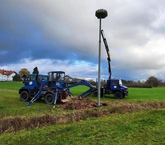 Gerade noch rechtzeitig vor der Winterpause konnte unser Storchennest auf der Struth, zwischen Weiherweg und Eselswasser, am Montag aufgestellt werden.