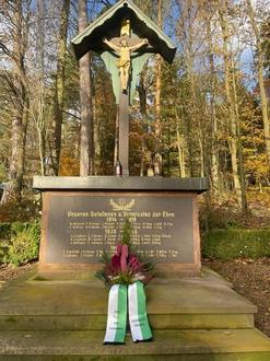 Anlässlich des Volkstrauertages fand am Ehrenmal eine Gedenkfeier statt. Wolfgang Sievers und Helmut Reich vom Ortsbeirat stellten zum Gedenken an die Opfer der Weltkriege eine Blumenschale am Ehrenmal nieder. Umrahmt wurde die Gedenkfeier durch die Chorgemeinschaft Döngesmühle unter der Leitung von Ute Hausschild.